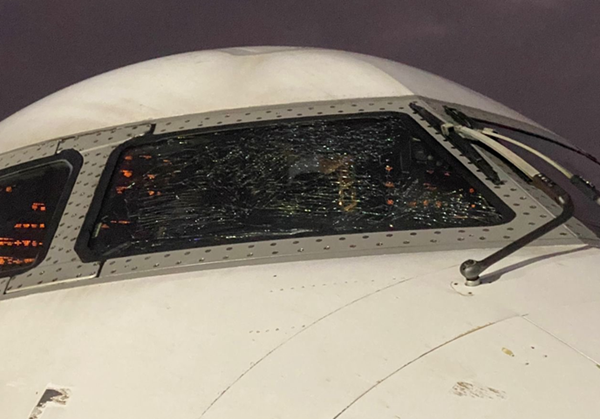 The damage forced the pilot to turn the aircraft around and make an emergency landing in Luanda as a precautionary measure.